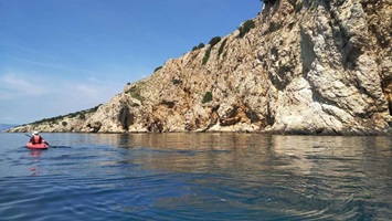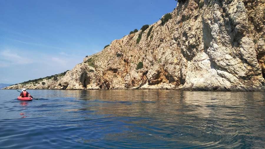Wenn das Wetter es zuließ, paddelten wir an der Küste entlang. Einmal auch über die Bucht nach Piran (SL).