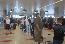 2 Schalter bei TUIfly waren offen und es gab lange Schlangen mit Corona-Abstand. 45 Minuten später waren wir an der Reihe und die Dame musste dringend telefonieren. Probleme? Nein, nein. Nach einigen Minuten mussten wir zur Seite treten und warten und Passagiere nach Düsseldorf wurden eingecheckt. Wieder 5 Minuten später kamen wir aber dann doch dran und erhielten unsere Bordkarten.
