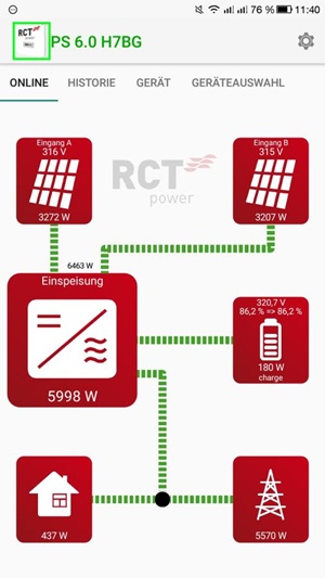 - Wechselrichter mit knapp 10 kW Eingangskapazität und bis 6 kW Wechselstromerzeugung. Wenn mehr Leistung vom Dach kommt, dann geht diese Leistung in den Speicher, sofern der noch nicht gefüllt ist.