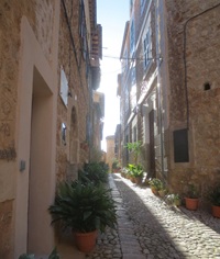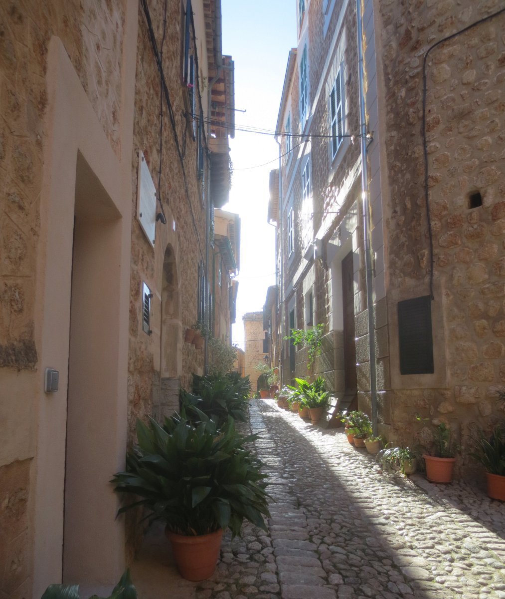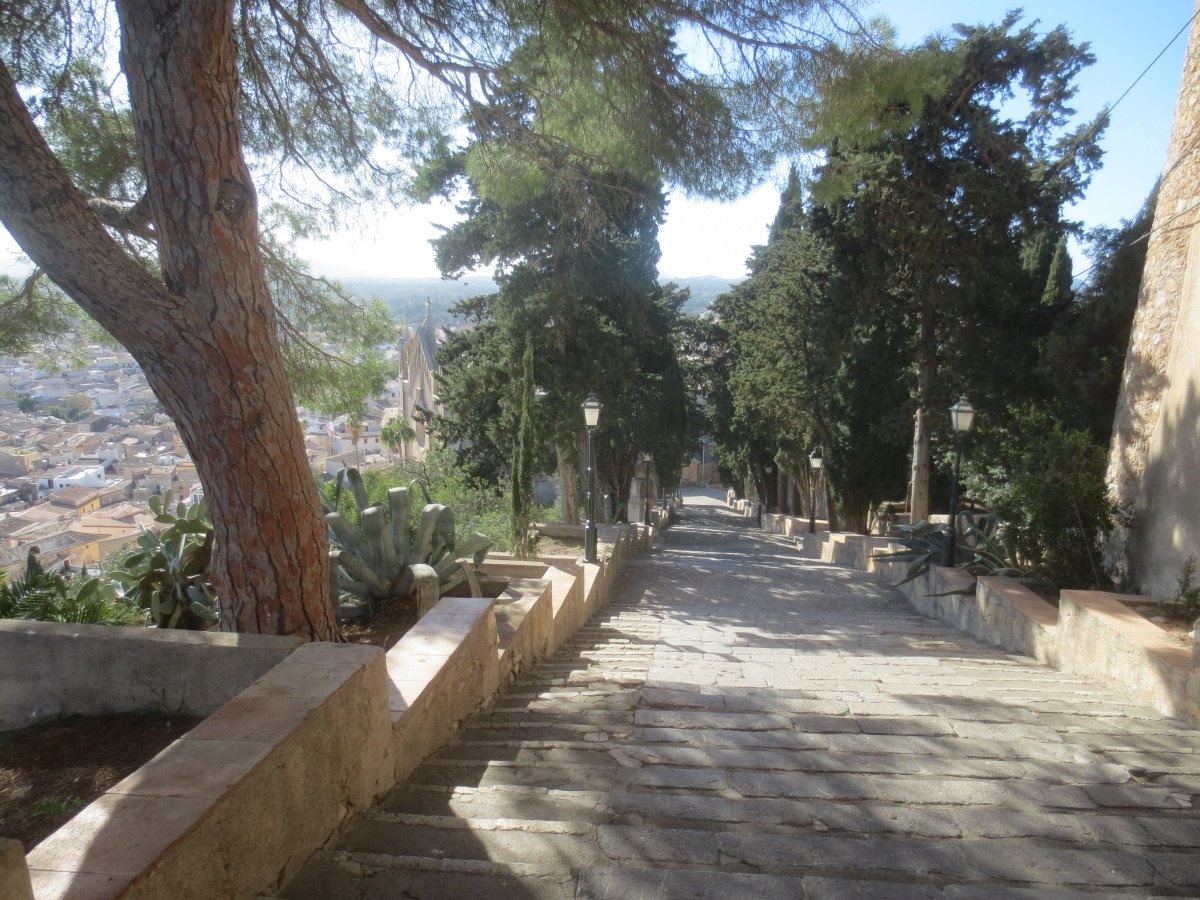Neben Palma haben wir uns viele Städtchen angesehen. Jede Ortschaft hat eine alles überragende Kirche im Zentrum und enge Straßen. Zum Parken muss man aber nicht in die Innenstadt fahren. Außerhalb gibt es Parkplätze und den Rest kann man zu Fuß erledigen. Uns ist aufgefallen, dass in den Gassen noch (oder immer) die Weihnachtsbeleuchtung hängt.