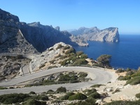 Wir sind gekommen, um die gesamte Insel kennenzulernen und haben bei unseren täglichen Ausflügen viel gesehen. Straßentechnisch bietet die Insel alle Möglichkeiten: von dem stark befahrenen dreispurigen Autobahnring um Palma, über Autobahnen, Schnellstraßen, Landstraßen im Flachland bis zu schönen breiten kurvigen Gebirgsstraßen und engen einspurigen Stichstraßen hoch zu Kirchen und Klöstern auf Bergen. Besonders im Gebirge sind da die vielen Radfahrer ziemlich nervig. Bergauf wollen sie überholt werden und bergab kommen sie dann mit Karacho von hinten angeschossen.